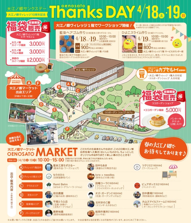 毎回恒例となっている「大江ノ郷出張出店」及び「はたらくくるまがやってくる!」、「明治安田生命健康ヘルスチェック」をはじめとして、今年はその他にもイベント盛りだくさんです!