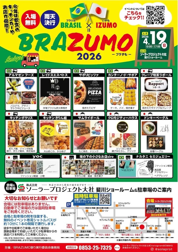 本場ブラジルの炭火串焼きやパステル、アサイーから、素敵なアクセサリーやハンドメイド雑貨まで、国際色豊かな出店が勢ぞろいします。