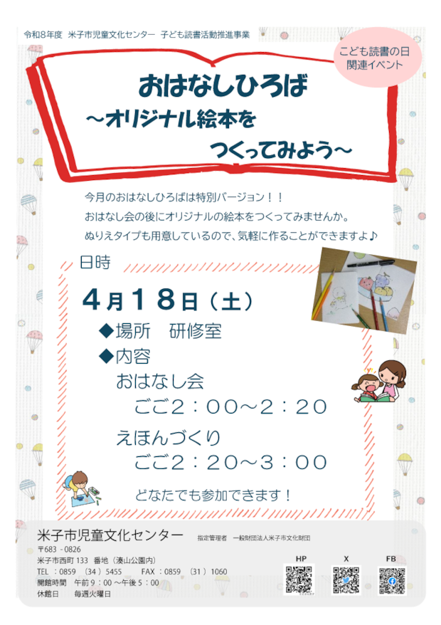 4月18日(土) に「おはなしひろば~オリジナル絵本をつくってみよう~」を開催します!