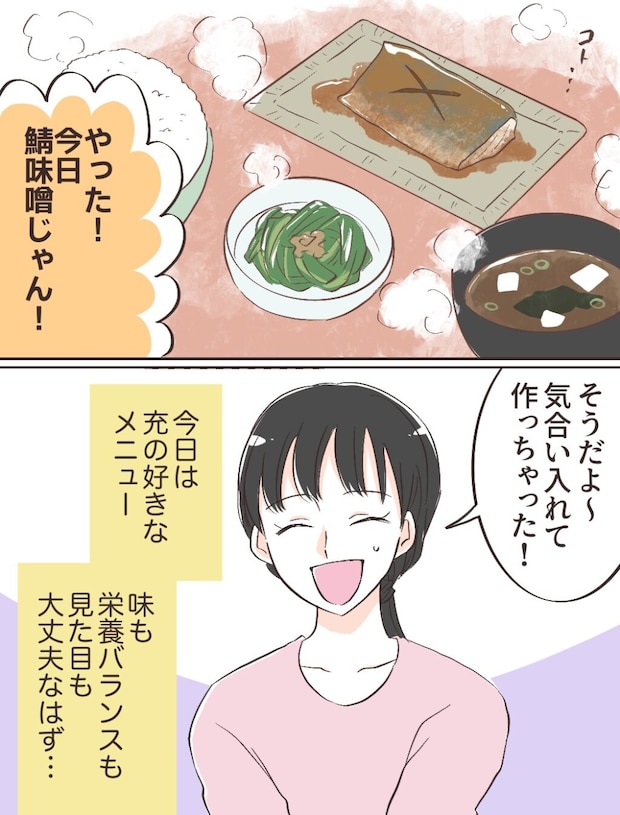 箸を止めて充が言ったのは「不味くはないんだけど、なんか違うんだよな~」という、なんとも曖昧だけれど確実に不満が伝わることば。私は何も言えずに俯きました。充は、私が何を作っても、そしてどれだけ上手にできたと確信しても、義母の味と違うとため息までついて不満を漏らします。