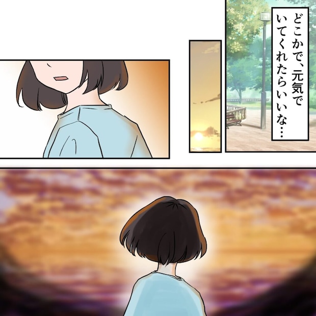ロッジで目を覚ますとそこにサユリはおらず、私は急いで部屋を出てサユリを探しに行きました。海辺で佇むサユリを見つけて声をかけると、涙を流しながら「こんな形で知られたくなかった・・」と言うサユリ。恋愛感情で好きだと言ってくれたサユリの気持ちに答えられなかった私。その後、サユリと一緒にいることはなくなりました。それから何年か経ち母親になった私は、ふとあの時のことを思い出すも、一体何が正解だったのかわからずにいました。