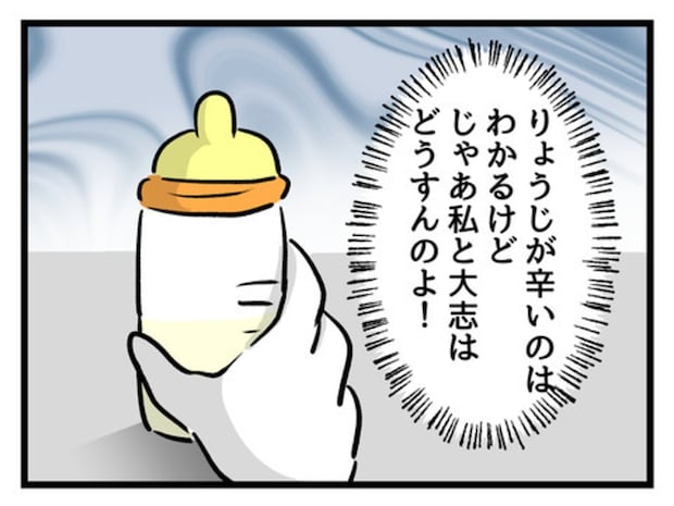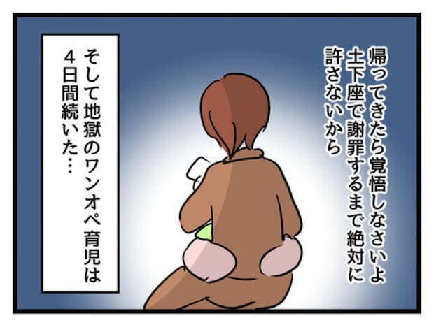 ワンオペだった4日間。確かに自分の身体もツライ時期ですので、りょうじさんにぶつかりたくなる気持ちも分かります。しかし、りょうじさんは遊びに行っている訳ではなく、父のお葬式に行っているので、そこは分かってあげてほしい所ですよね。