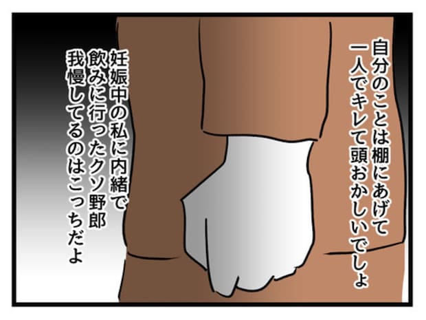 りょうじさんに言われたことがストレスでしかないキリコさん。妊娠中に起こったりょうじさんの飲み事件を思い出し、許せない気持ちが再びこみ上げてきました。