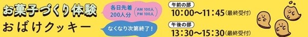 さらに同会場2階では、お菓子づくり体験も開催する。開催日時は10月12日(日)と13日(月)の10:00~11:45と13:30~15:30。費用は無料で、各日先着200人分。なくなり次第終了となる。