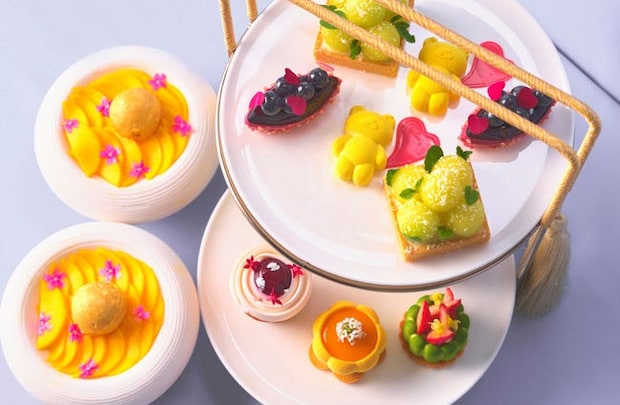 ・チェリーやメロン、国産マンゴーなどを使った彩り豊かなスイーツが並ぶ