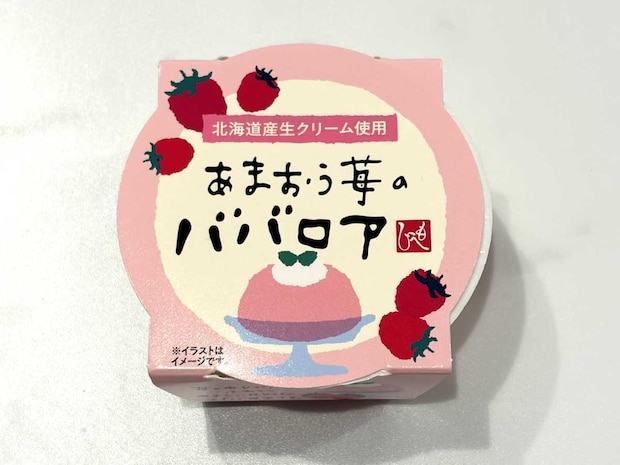 北海道産の生クリームにあまおう苺の果汁を合わせた本格派で、カップには淡いピンク色のババロアがたっぷり詰まっています。