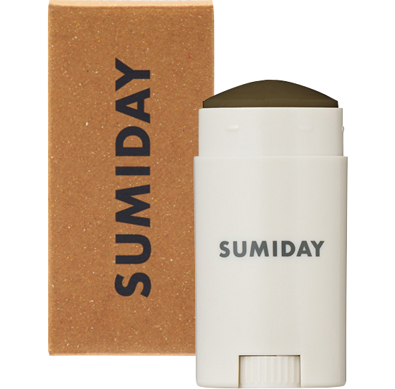 「顔まわりは肌にもなじませるようにつけ、手でぼかすとシェーディングにもなります」(shuco)。SUMIDAY HAIR BALM ダークブラウン ¥2,970(コスメキッチン)