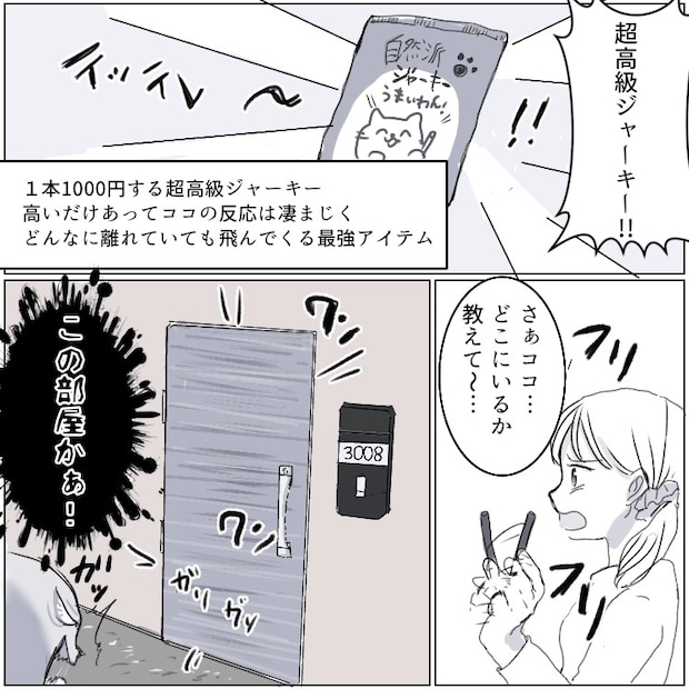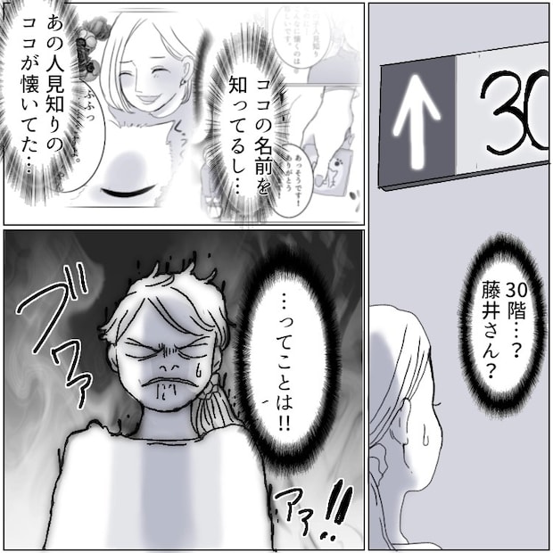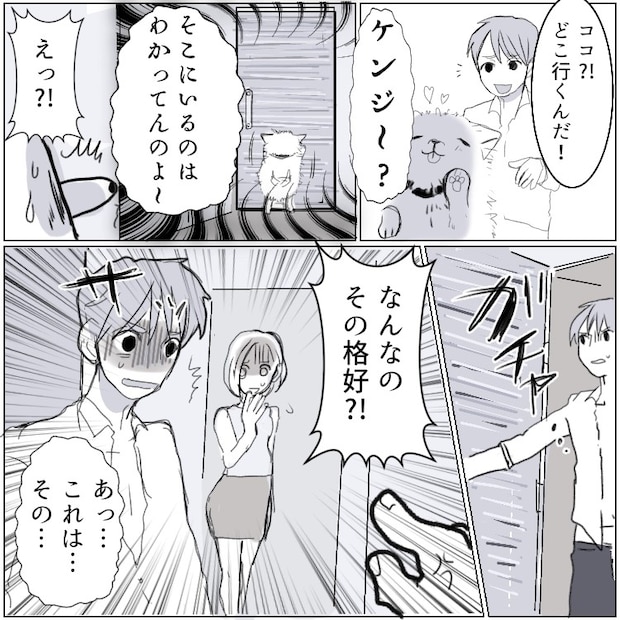 タワマンで夫・ケンジと暮らしているリカコ。ペットとして愛犬・ココを飼育しており、散歩はいつも夫が担当している。そんなある日、ケンジが体調を崩してしまったため、代わりにリカコが散歩へ行くことに。その際に、エントランスで女性とすれ違うと突然ココが彼女に飛びついたため、不思議に思うリカコ。普段人見知りのはずのココが、いったいどうして懐いているのか!?