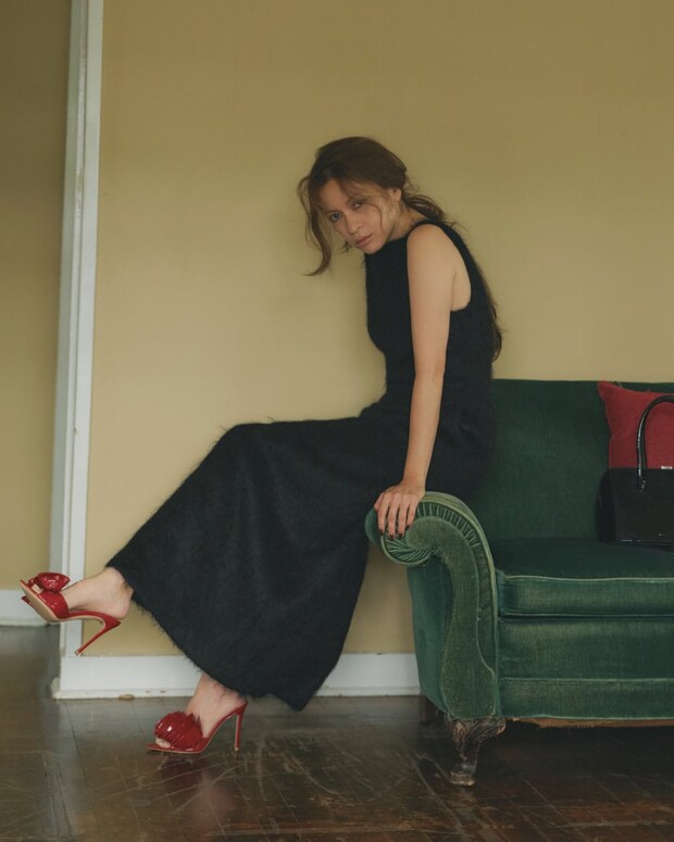 まさにオトナのネオボディコンと呼べそうな、オーラリーのロングドレス。毛足のあるウール素材で、品よく着られる。