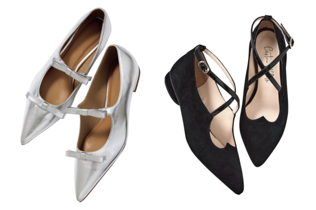 右から:黒ハートシューズ¥35,200(クリスティーナ ミロッティ/共にエディットフォールル)、シルバーシューズ¥15,400(アダム エ ロペ)