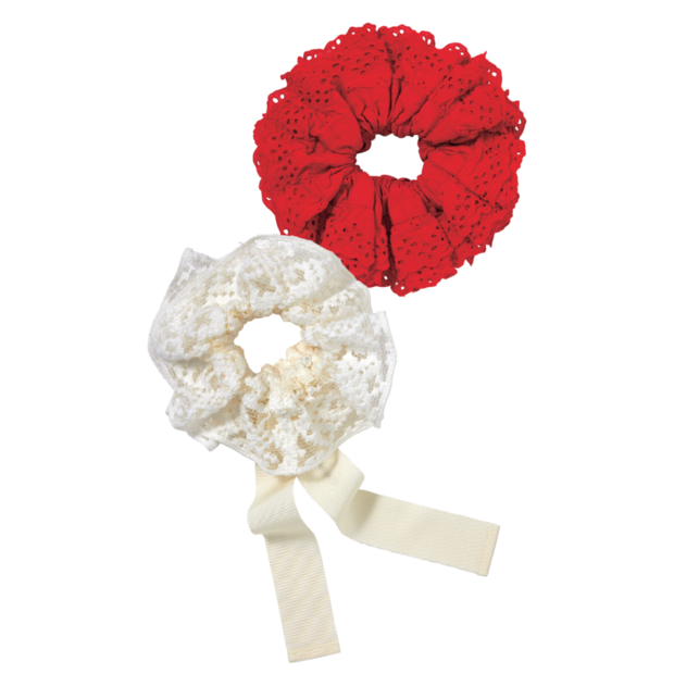 上から:赤レースシュシュ¥10,450(グッド スクイッシュ/RHC ロンハーマン)、白レースシュシュ¥8,800(メゾンドリリス)