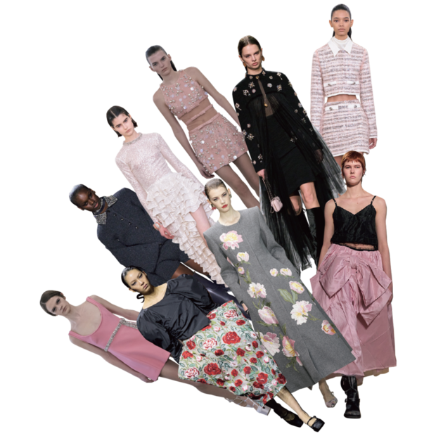 メリージェーンやフリル、ピンクなどの胸キュンの甘いアイテムが台頭。一方でからだのラインを生かしたコンシャスなスカートやドレス、レースなどラブリーに傾かない女らしさを強調するアイテムも多く見られ、この二大潮流を合わせてレディライクなムードとして、今回は捉えていきます。ともに言えるのは、カジュアルとかラフとか抜く方向ではなく、ドレスアップする風潮が戻ってきているということ。あえておしゃれしている感を楽しみたい!
