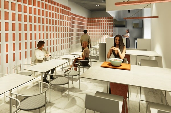 店舗デザインは、隈研吾建築都市設計事務所の隈太一氏が担当。壁一面を沖縄の赤瓦で構成し、漆喰によって地面と溶け合うように演出している。