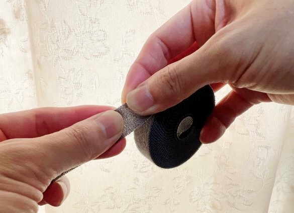 5cm間隔でミシン目が入っていて、手で切れるんです。一般的な結束テープは硬くてハサミが必須ですから、手でビリッと切れるのはちょっとした時短にもなって嬉しいですよね。