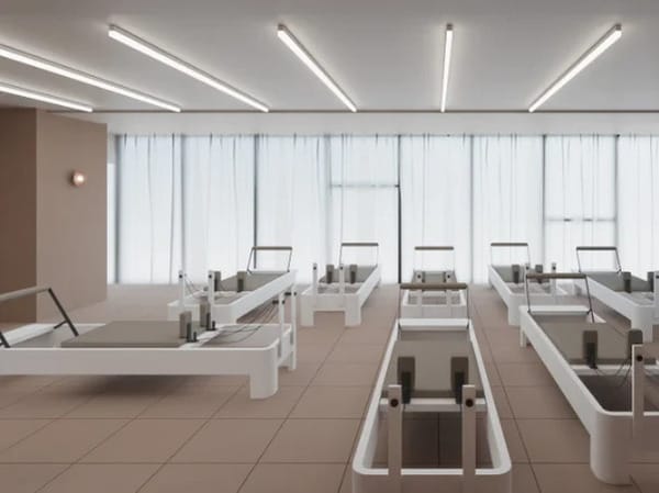 15台のリフォーマーを設置できる広々としたスタジオは、グループレッスンでありながらも周囲を気にすることなく伸び伸びと体を動かすことができる空間。