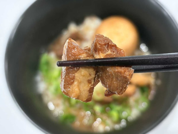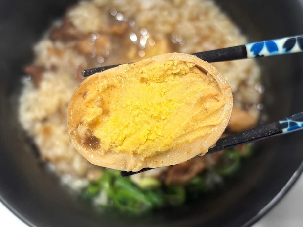 ゆで卵は中まで、お汁の甘辛い味が染み込んでいました。白身は少し硬めの食感で、豚肉と同様に噛みごたえがあります。