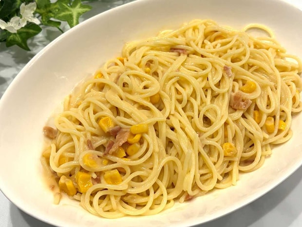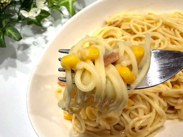 コーンの甘味とベーコンの塩気がマッチした「たっぷりコーンとベーコンのクリームパスタソース」をご紹介します。