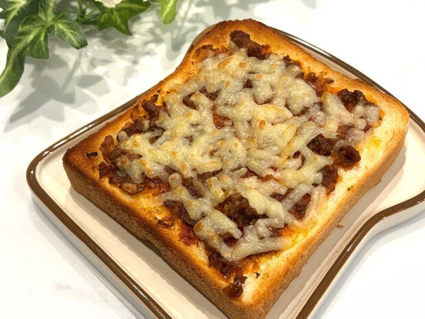 食パンの甘味とチーズのコクがキーマカレーの辛味を和らげてくれて、バランスの良い味わいに!サクッとしたトーストとお肉の食感のコントラストも楽しいアレンジになりました♪