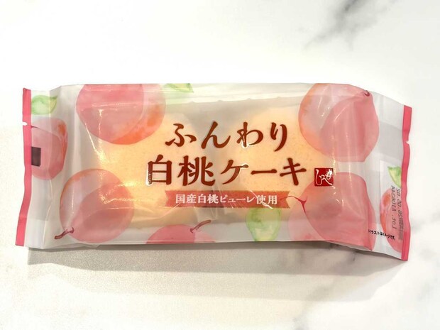 国産白桃のピューレを使用したシフォン生地に、白桃ピューレ入りのカスタードクリームを閉じ込めた一品。2個入って価格は321円(税込)です。