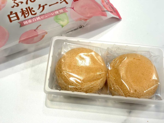 袋の中には、個包装になった白桃ケーキが入っていました。衛生的で持ち運びやすいですし、家族や友人とシェアしやすいのも嬉しいですね♪