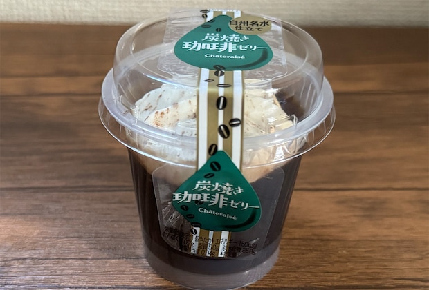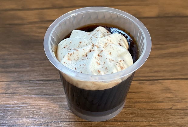 やわらかな苦味と豊かなコク、そして芳醇な甘みを持つコロンビア産コーヒーを使用しています。ゼリーの上部にはホイップクリームがたっぷりと乗せられており、コーヒーゼリーとホイップクリームのみというシンプルな構成に仕上がっています。