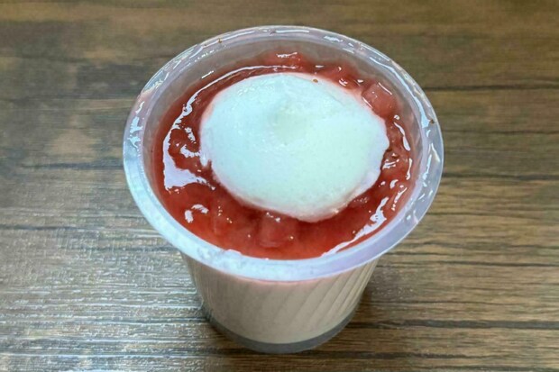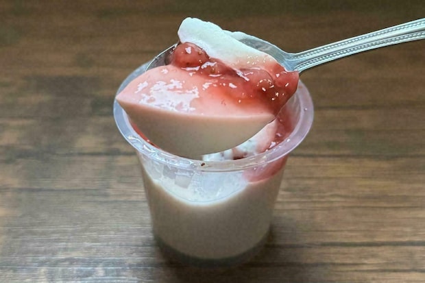 実際に味わうと、プリンからは苺とミルクの風味がしっかりと感じられ、コンポートが味や食感の良いアクセントとして機能しています。