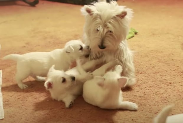 子犬さんたちの遊び相手になる母犬さんは