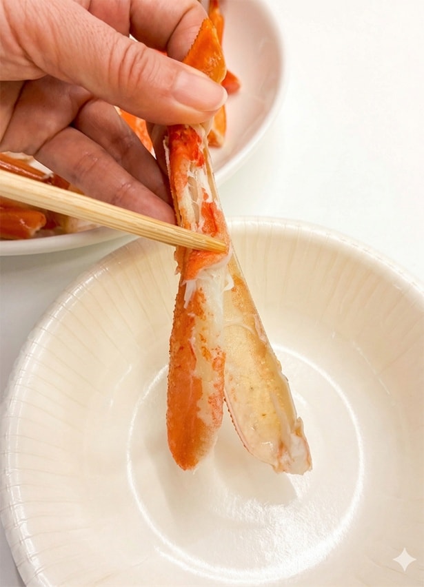 実際に試食してみると、繊維一本一本がしっかりしていて、噛むたびにカニの甘みが口いっぱいに広がります。届いてから冷蔵庫で一晩解凍して試食しましたが、冷凍のカニにありがちなパサつきや水っぽさはありません。