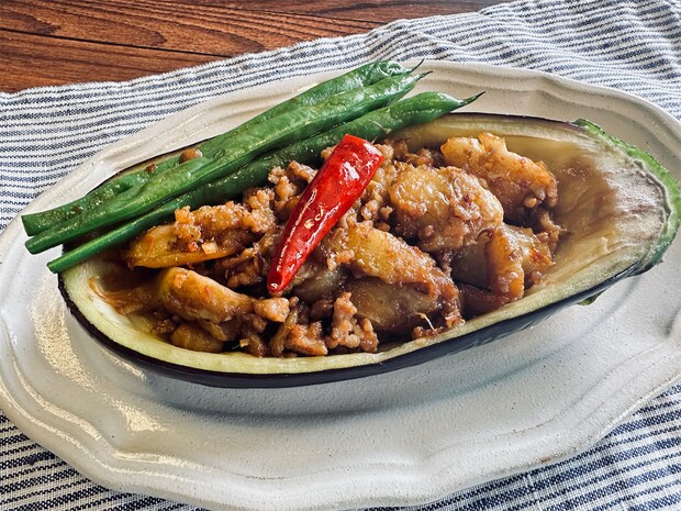 見た目のインパクトで、食卓が盛り上がること間違いなしの「丸ごと麻婆なす」、米なすが出回る時期にぜひ作ってみてくださいね。