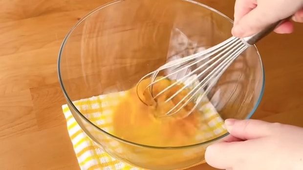 - ボウルに卵を割り入れて泡だて器でよくほぐす