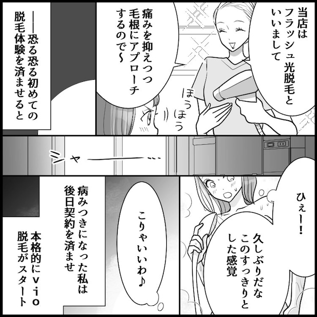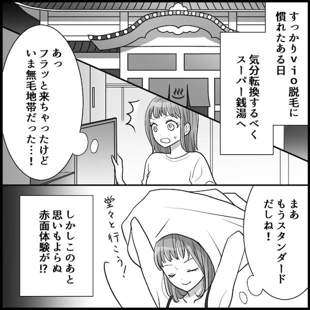 思い切って脱毛サロンの門を叩いたら、意外にも快適な“無毛”生活が待っていた主人公。勇気を出して行って良かったと思ったのもつかの間、このあと赤面必至の衝撃展開が待ち受けます。一体なにが……。