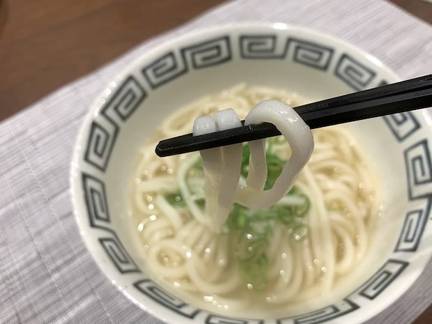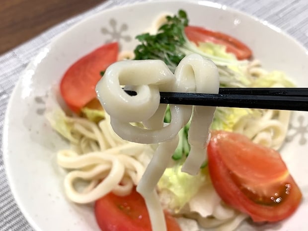 実際に食べてみると、冷凍とは思えないほどの弾力ともちもちしたコシがあり、喉ごしも抜群!