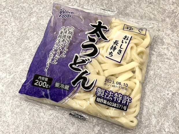先ほどのシリーズの太麺タイプ「おいしさ長持ち 太うどん」も、同じく1袋20円以下という圧倒的な安さ。