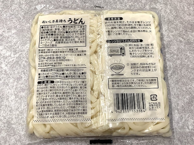 最強のコスパとも言えるのが、1袋200g入って20円以下という「おいしさ長持ち うどん」です。