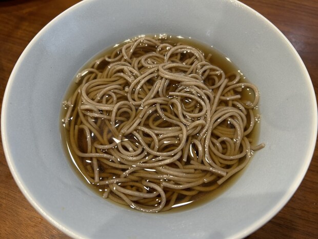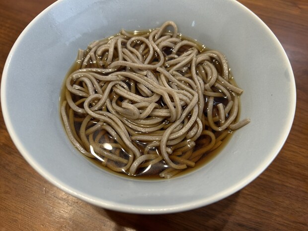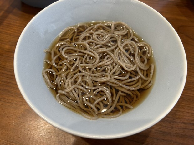 ゆであがったおそばは、細麺ながらもしっかりとしたコシと歯ごたえがあり、喉越しが非常にスムーズです。
