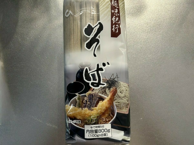 備蓄用として買っておきたいのが、乾麺コーナーの「麺味紀行 そば」。800g(8束)入って358円(税込)。
