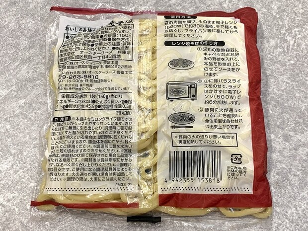 フライパンで通常通りの焼きそばはもちろん、裏面にはレンジ焼きそばの作り方も。