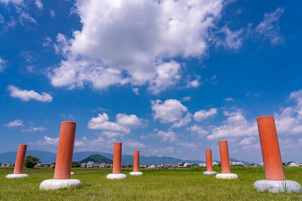 奈良県橿原市 盛夏の藤原宮跡と畝傍山