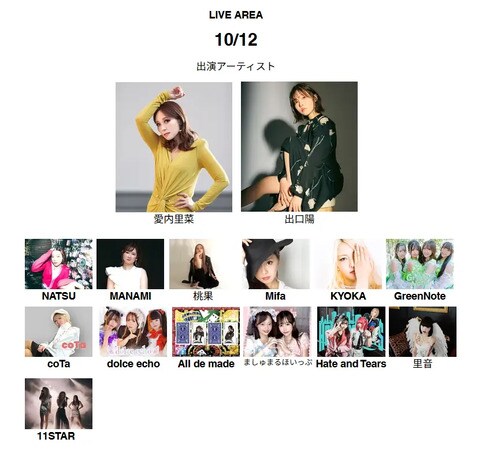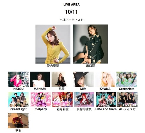 13日(月・祝)とも、ライブエリアの出演者は全て女性アーティスト。この他にも、ポールダンスショーや、凄腕ダンスチームによるパフォーマンスなど、ステージから目が離せない。
