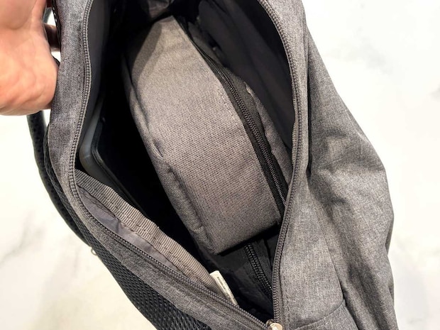 さらに、メッシュの背面部分もファスナー付きの収納スペースになっていました。