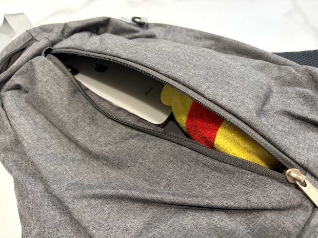 さらに嬉しいのが、中身を入れたままバッグの形を変更できる点。ショルダーバッグの袋部分がリュックの最深部になる構造のため、ショルダーのファスナーは閉めたままで変形できます。