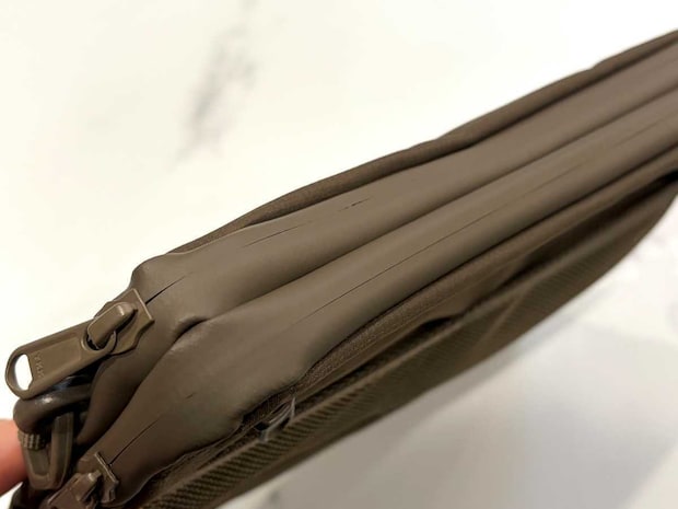 まず目を引いたのが、上部のファスナーが生地で隠れているデザインです。