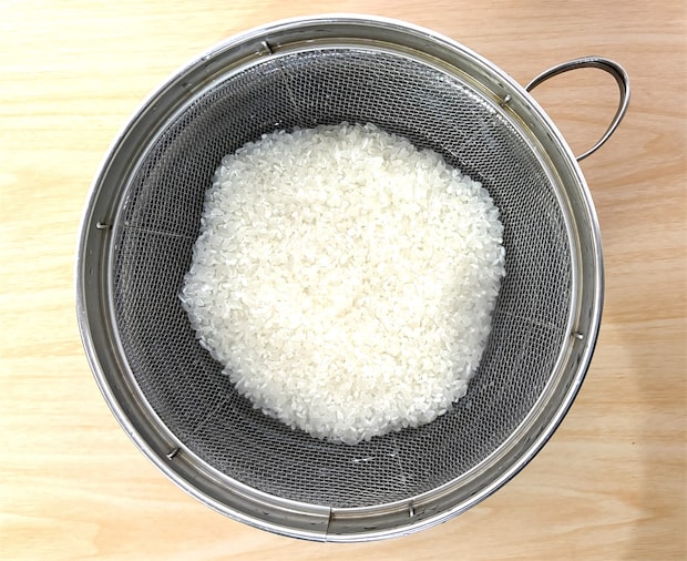米は洗って分量の水を加えて、30分ほど吸水させる。