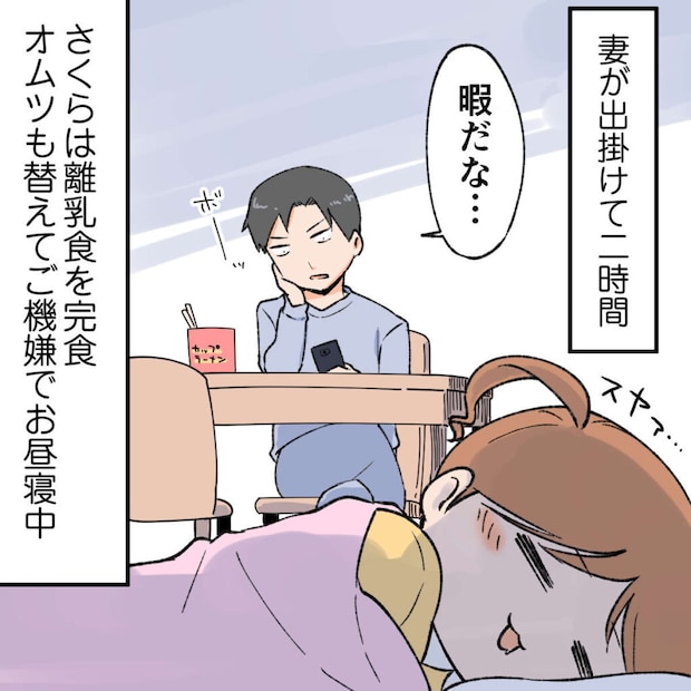 ゆきのが出かけて2時間。さくらは離乳食を綺麗に完食し、オムツも替えてご機嫌でお昼寝中です。俺はというと、昼食のカップラーメンを食べて、スマホを眺めながらぼーっとしているところ。特にやることもなく、さすがに暇になってきました。