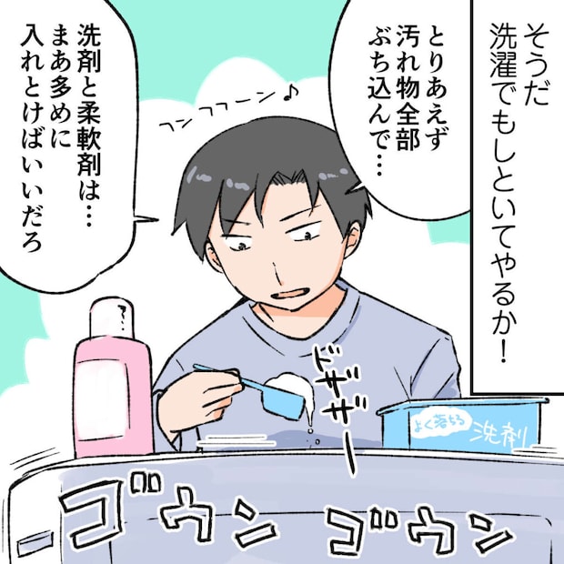 そうだ、洗濯でもしておいてやるか。何もせずに時間を潰すより、家事を片付けておいたほうがきっとゆきのも助かるはず。とりあえず汚れ物を全部ぶち込んで、洗剤と柔軟剤はどのくらい入れればいいのか分からないけど・・・まぁ多めに入れておけば問題ないでしょう。