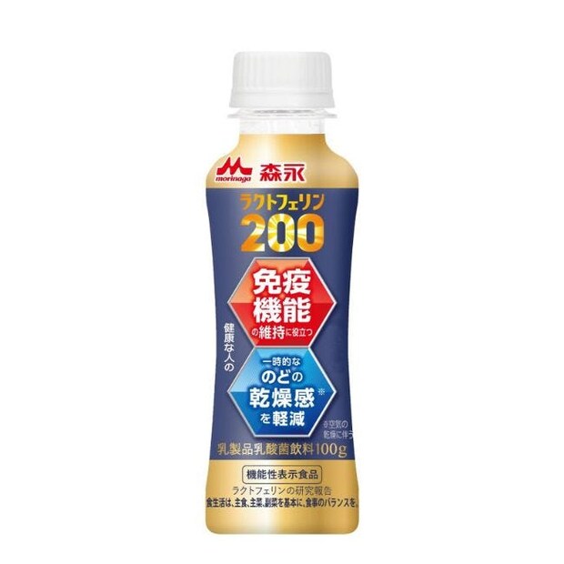 ・本品は、疾病の診断、治療、予防を目的としたものではありません。「森永ラクトフェリン200 ドリンクタイプ」は日本で唯一(※1)「のどの乾燥感軽減」機能と「免疫機能の維持」のWケアの機能性表示飲料です。