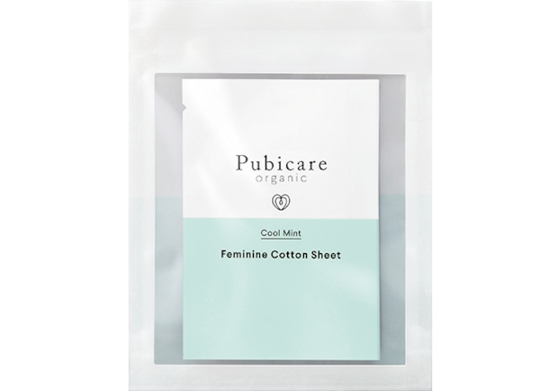 清涼感のあるミントでリフレッシュ効果もあるオーガニックコットン100%のシート。Pubicare organicフェミニンコットンシート クールミント 5枚入り ¥605(ビープル)