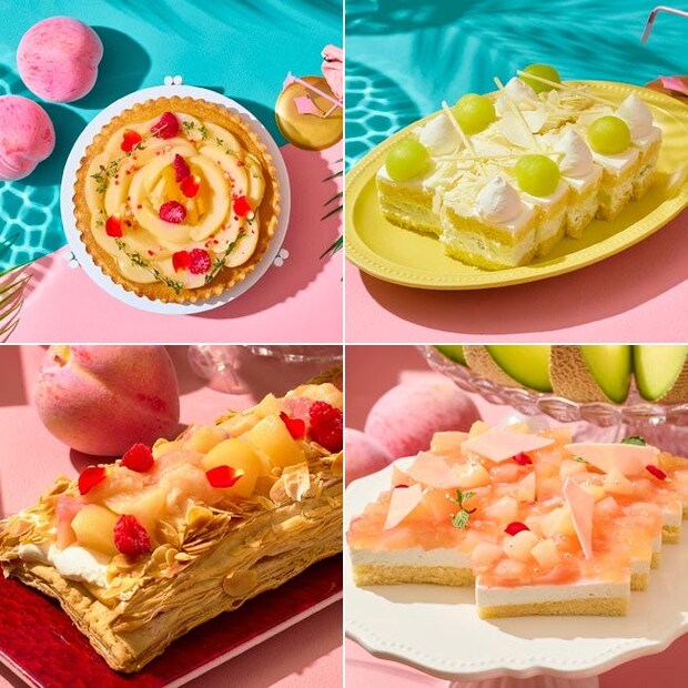 グラスの中に美しさが閉じ込められたベリーヌは、涼を感じる4種類がラインナップ。「ピーチジュレ」や「桃のパンナコッタ」に加え、遊び心あふれる「メロンソーダ風ゼリー」も。また、6月30日(火)までは「メロンミルクプリン」、7月1日(水)からは「マンゴーミルクプリン」が期間限定で用意される。つるんとしたのど越しのデザートで、夏気分を盛り上げよう。