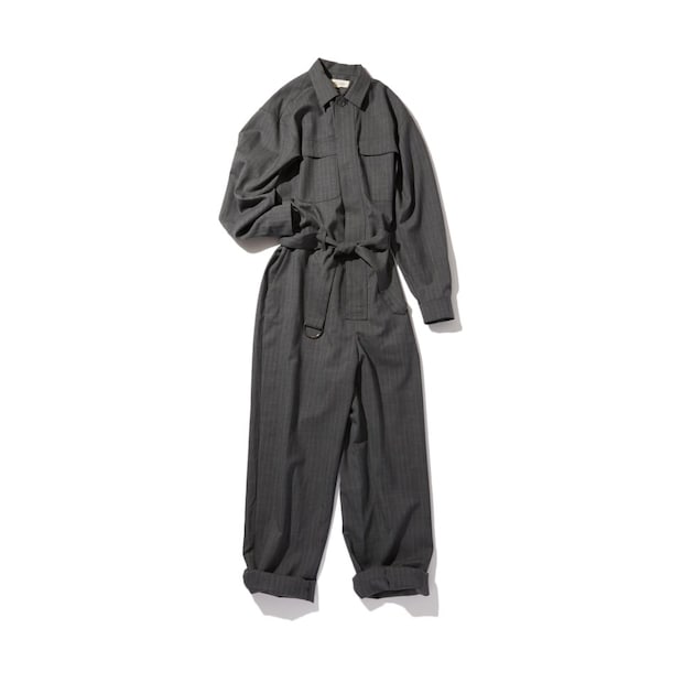 筆者はピンストライプをチョイスしたのですが、これがかなりイイ! シルエットはリラックス感があるゆったりめですが、共地のベルトでキュッと結ぶと女性らしいメリハリをつけられるんです。ウールトロピカルの品のある風合いも絶妙。カジュアルなジャンプスーツの格上げさせるのにもひと役買ってくれますし、少しハリのある生地感なのでシワになりにくいというのもうれしいポイントです!