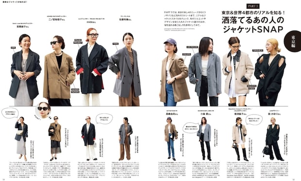 個人的に楽しくてしょうがなかったのが「東京&世界4都市のリアルを知る! 洒落てるあの人のジャケットSNAP」です。もう、すみからすみまで読んで、もう一度最初からすみからすみまで読んでの無限ループ状態。情報量が多過ぎて最高。おしゃれ業界人のジャケットへの向き合い方、リアルに参考になります。結構、保存版レベルの内容だと思います。